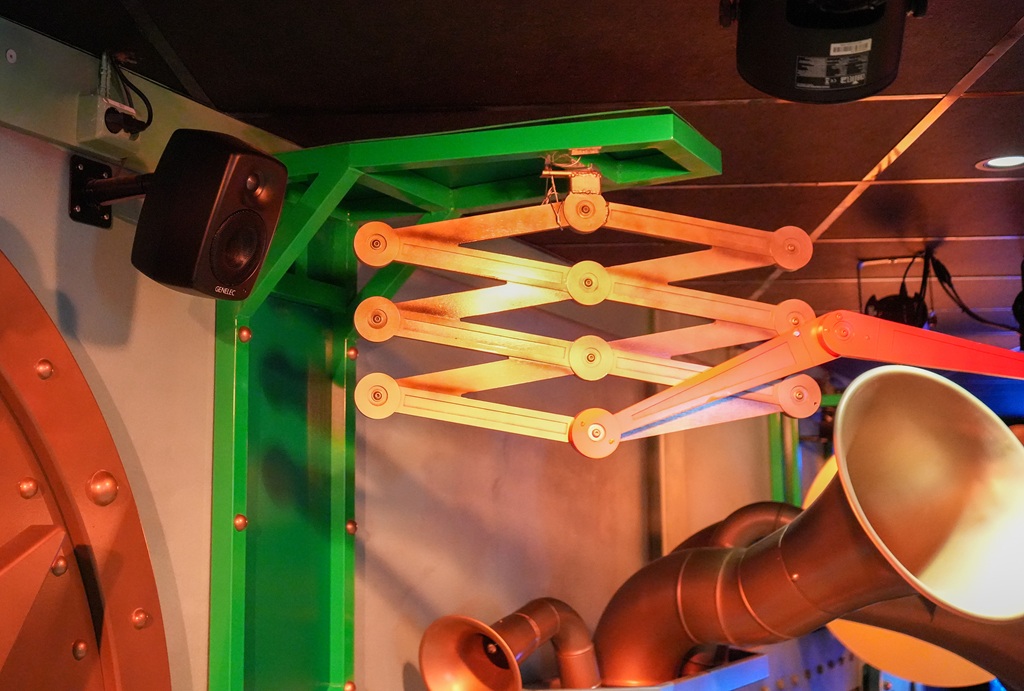 Ein wichtiges Werkzeug war die Software Smart IP Manager von Genelec, mit der die Lautsprecher vor der Integration in Q-SYS konfiguriert wurden. Bei der Installation spielte die Platzierung eine zentrale Rolle. Im Wartebereich, in dem farbenfrohe Figuren auf die Hauptvorstellung einstimmen, wurden verschiedene Anordnungen getestet. Anstatt die Lautsprecher in einer Linie von vorne nach hinten zu platzieren, entschied man sich nach Versuchen im Benum-Büro für eine seitliche Positionierung entlang der Zuschauerrampen. Das Ergebnis war ein deutlich intensiveres Klangerlebnis.
