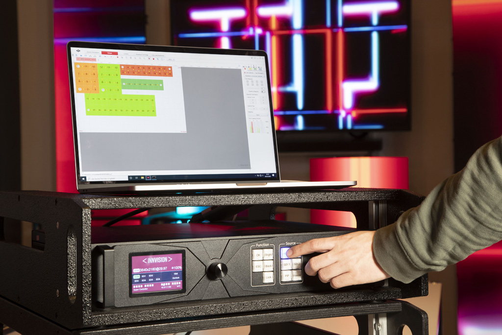 Die Innvision-Controller sollen für ein exakt synchrones Splicing und Kaskadieren bei mehreren Controllern mit Optionen für Helligkeits-/Farbanpassung sowie optimierten Graustufen bei niedrigen Helligkeitswerten sorgen. Mit diesen Controllern werden Funktionen wie Picture in Picture oder auch Scaling, Zoom und Splitting unterstützt.