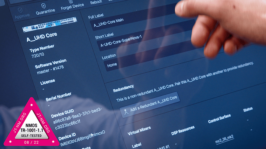Die Testergebnisse der JT-NM bestätigen HOMEs Kompatibilität zur Spezifikation NMOS IS-04 für die Erkennung und Registrierung von vernetzten IP-Geräten. In Bezug auf die IS-05-Spezifikation für die Verbindungsverwaltung ist HOME ferner erwiesenermaßen in der Lage, NMOS-Schaltungen zu überwachen und auszulösen.