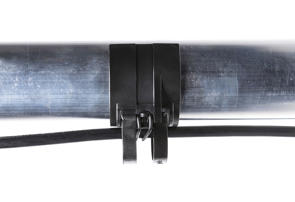 SNAP ist eine Klammer, die Kabel/ Leitungen an Traversen führt und so den Einsatz von Klebebändern und Kabelbindern minimiert