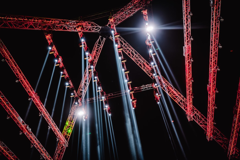 „Ich bin immer wieder begeistert, wie problemlos der Otos H5 ein mehrtägiges Outdoor-Technofestival übersteht“, zeigt sich Marek Papke vom IP65 Beam-Spot-Wash Hybrid Moving Head beeindruckt. Genau 100 Otos H5 verteilte das Team in der Gerüststruktur der Main Stage und den Traversen über dem Open Floor. „Mein Ansatz ist es, mit den Scheinwerfern die Linien der Bühne nachzuziehen. So finden sich unter anderem mehrere lange, gerade Anordnungen aus Otos H5, mit denen ich die Geometrie und Formgebung der Bühne unterstreiche.“