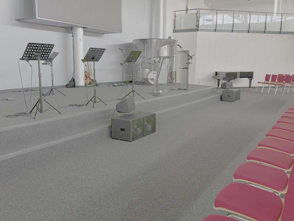 Der Veranstaltungsraum des Christlichen Zentrums bietet einen Innenraum und einen Balkon. Beide Bereiche verfügen über bewegliche Wände, sodass je nach Veranstaltung das Raumkonzept angepasst werden kann.