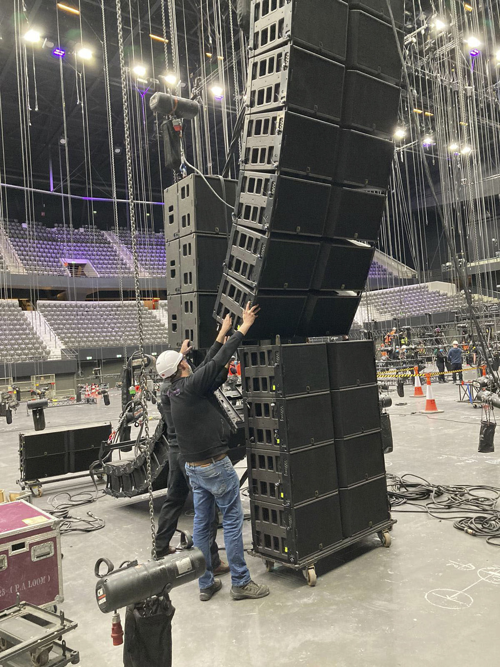 Zwei Hänge mit 12 Kara, die jeweils mit zwei SB18-Subwoofern bestückt waren, dienten als Sidefill für die Sitzplätze an beiden Seiten der Bühne, wobei ein weiterer zentraler Hänger mit Kara und SB18 sowie links und rechts 10 K1 für die Sitzplätze im hinteren Teil der Arena vorgesehen waren. Insgesamt zehn 5XT sorgten für die Beschallung der Balkone, wobei zwei Hänge mit fünf Kara als Monitorsystem auf die Bühne gerichtet waren. Das gesamte System wurde von 84 verstärkten LA12X-Controllern angetrieben.