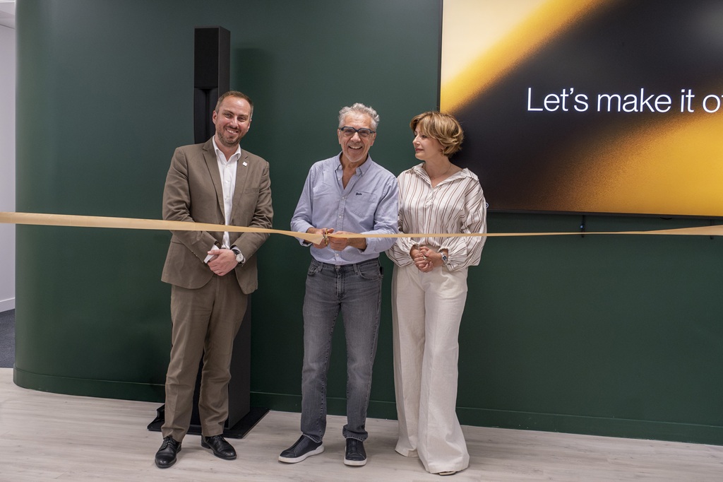 Gérald Yven, Christian Heil und Anne Hamlet bei der Eröffnung der Unternehmenszentrale von L-Acoustics in Massy, Frankreich (Bild: L-Acoustics)