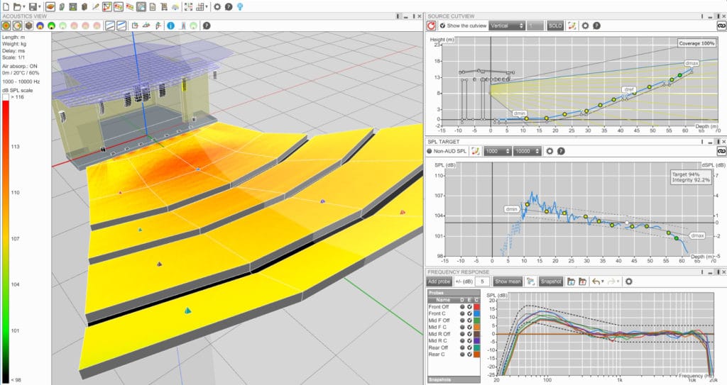 Mit Soundvision hat L-Acoustics nach eigenen Angaben als erster Hersteller ein akustisches 3D-Echtzeitsimulationsprogramm auf den Markt gebracht. Mit „Autosplay“ und „Autofilter“ profitieren Soundvision-Anwender auch in Zukunft von wegweisenden Funktionen, mit denen sich eine gleichmäßige Schallabdeckung am Veranstaltungsort noch gezielter realisieren lässt. Um den optimalen Sound zu erzeugen, spielt die Physik – die Auswahl der richtigen Lautsprecher und deren mechanische Ausrichtung – eine entscheidende Rolle. Um dies zu erreichen, ermöglicht die Autosplay-Funktion Sound-Designern, den gewünschten SPL-Zielwert entlang des Publikums zu definieren. Parallel dazu errechnet Autosplay die optimalen Lautsprecherwinkel. Nachdem die Lautsprechersysteme vor Ort in Position gebracht wurden, wendet Autofilter DSP-Einstellungen an, um sicherzustellen, dass das System an jedem Veranstaltungsort für eine gleichmäßige, transparente Abdeckung optimiert wird.