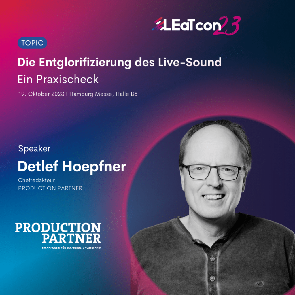 Detlef Hoepfner, Chefredakteur PRODUCTION PARTNER, wird sein umfangreiches Audio-Wissen und seine Erfahrungen auf der LEaT con 2023 im Panel „Die Entglorifizierung des Live-Sound – Ein Praxischeck“ zum Besten geben.