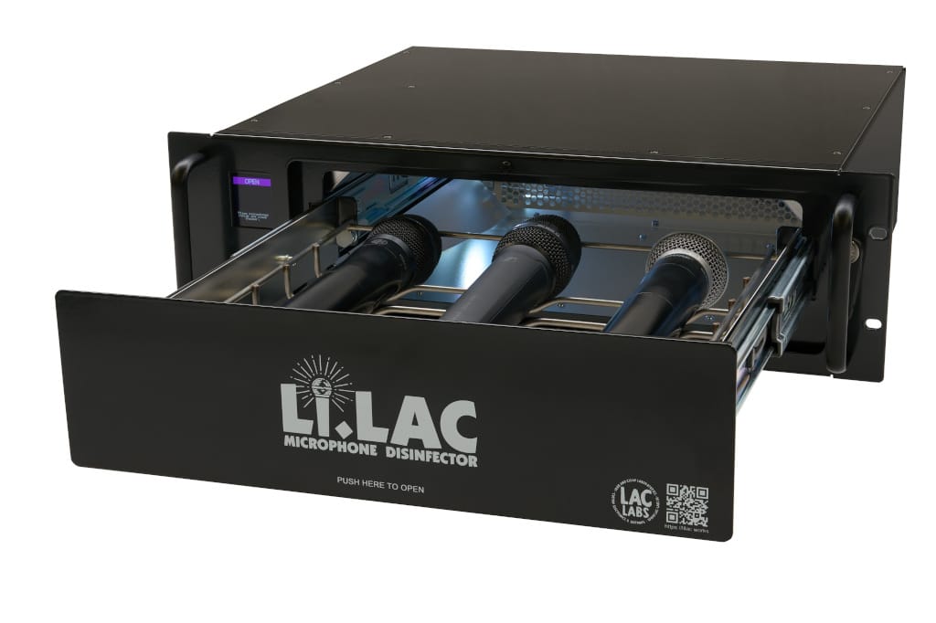 Beim Li.LAC Microphone Disinfector handelt es sich um einen Ansatz zur Mikrofonhygiene: Er ermögliche eine wissenschaftlich verifizierte Desinfektion von Handmikrofonen, Handsendern, Ansteck- und Headset-Mikrofonen und anderen Gegenständen wie Beltpacks durch UV-C-Licht. Das Design von Li.LAC sei „road-tauglich“ in einem 19“-3HE-Rack-Format.