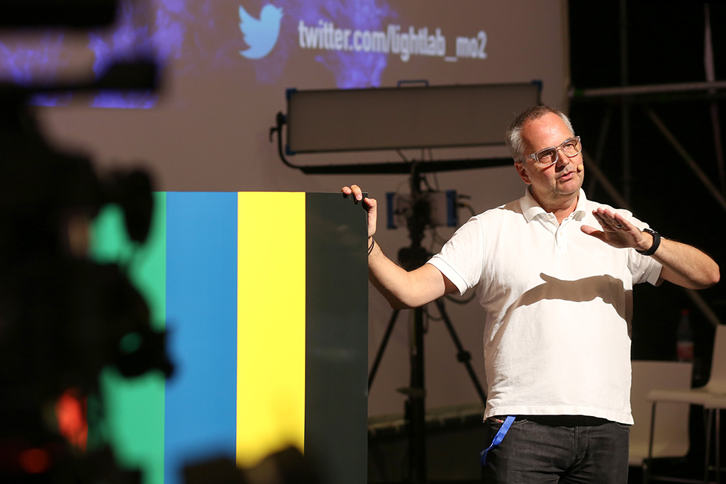 „Brighten the future“ – unter diesem Motto steht das LightLab auf der diesjährigen Stage|Set|Scenery in Berlin. Im 320 m² großen LightLab in Halle 20 dreht sich alles um die Themen Licht, Projektion und Netzwerk. Als Kurator konnte Lichtdesigner Manfred „Ollie“ Olma von der Firma mo2 design gewonnen werden.
