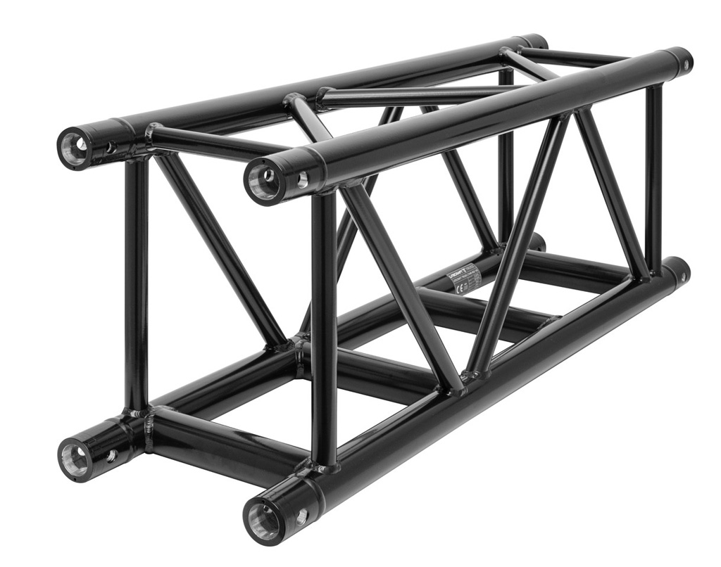 Das horizontale Leiterfachwerk an der Traversenunterseite hingegen sorgt dafür, dass sich Lasten nicht nur an den Hauptrohren, sondern auch an den Querstreben anschlagen lassen, was dem Anwender letztlich zu mehr Flexibilität verhelfe. Die Möglichkeit Lasten entsprechend zu verteilen soll auch die Stabilität der Gesamtstrecke erhöhen und gleichzeitig mögliche Verwindungen reduzieren, wie sie beim einseitigen Belasten der Traversen auftreten können. Auch Movinglights lassen sich an den horizontalen Verstrebungen leichter anbringen.