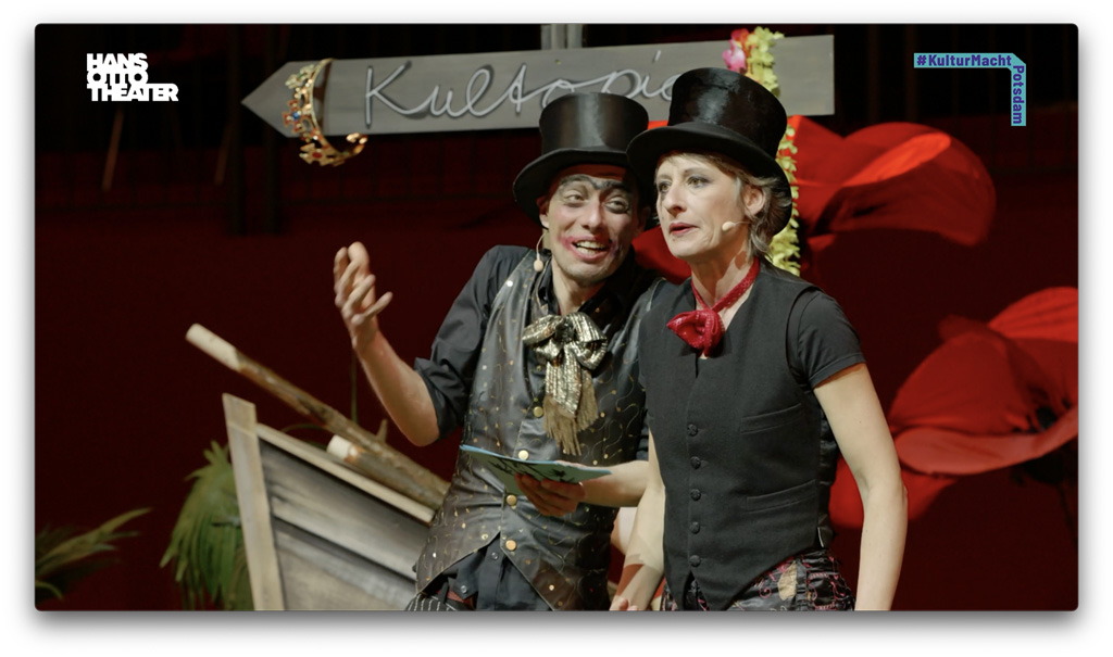 Der zentrale Produktionsarbeitsplatz war im Hans Otto Theater eingerichtet. Im dortigen Auditorium hatte man ein mobiles Multicam-Setup mit sechs Kameras auf Schienen und Dollys aufgebaut, mit denen Auftritte aus dem gesamten Theater erfasst wurden. Die Signale für den Programmmix des Raums wurden in einen ATEM Mini Extreme gespeist.