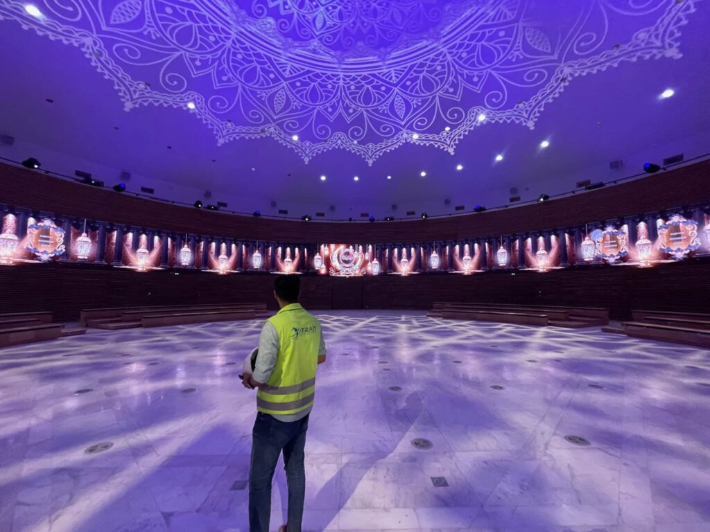 Im Rahmen ihrer Expansion hat die Mohammed VI Polytechnische Universität (UM6P) offiziell ihre Agora eingeweiht, ein Mehrzweck-Hörsaal, der Teil des Ben Guerir Campus in Marokko ist. Der runde Raum mit einer Fläche von über 800 m² ist mit einem audiovisuellen System ausgestattet, das eine gebogene LED-Wand von Samsung und eine Kuppelprojektion mit 24 Christie-Videoprojektoren kombiniert. Das Setup wird von Modulo Kinetic Medienservern von Modulo Pi betrieben.