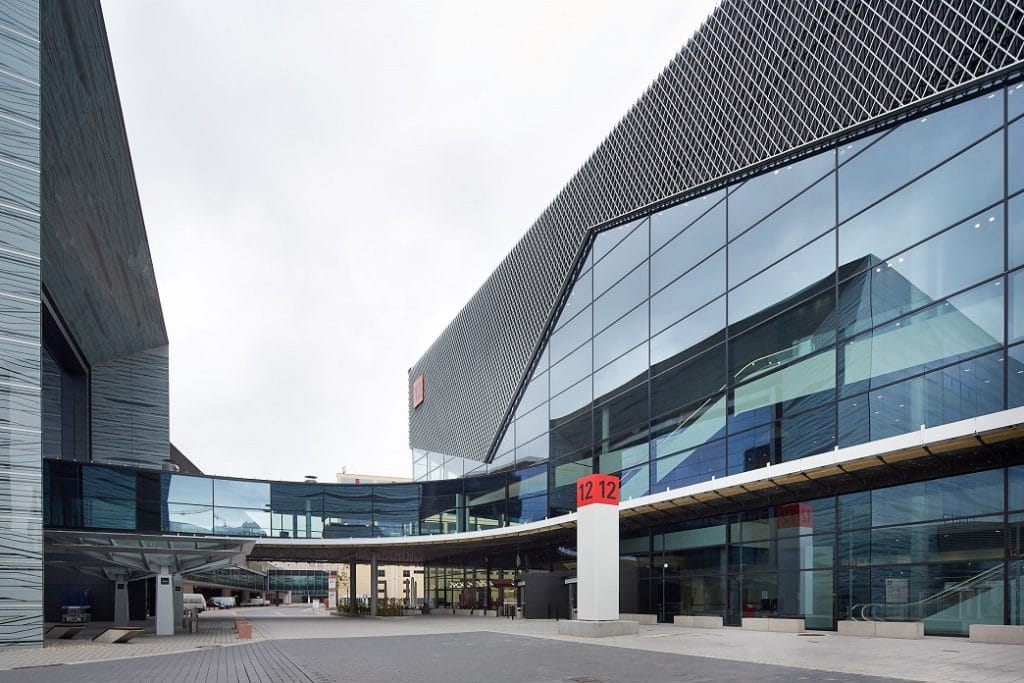 Zahlen zum Bau Zu Spitzenzeiten haben gleichzeitig über 800 Handwerker an der Halle gearbeitet. Ihre Fläche entspricht der Größe von fünf Fußballfeldern. Es wurden 945 Türen verbaut sowie ca. 600 Kilometer Daten- und Schwachstromkabel und 50 Kilometer Kabel für die Gebäudeleittechnik verlegt. Des Weiteren gibt es 46 Lüftungsanlagen, 50.000 Quadratmeter Lüftungskanäle, sechs Kältemaschinen, 34 Kilometer Rohrleitungen für Kälte und Heizung, 160 Heizkörper, 25.000 Sprinkler, 11,2 Kilometer Trinkwasserleitungen aus Edelstahl.