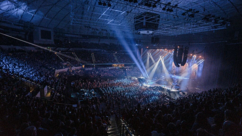 „Unser Grundkonzept sieht vor, dass die Lautstärke vom FOH bis zur ersten Reihe nicht mehr als 3 dB ansteigt und in den hinteren Reihen nicht mehr als 3 dB abfällt“, so Lawrence. „Aber wir wollen trotzdem, dass die Tonalität überall im Raum gleich ist, so dass man die tiefen Frequenzen überall gleich gut wahrnimmt, egal ob man vorne oder hinten sitzt. Wir haben viel Arbeit in die Abstimmung zwischen den geflogenen Lautsprechern und denen am Boden gesteckt, um das zu gewährleisten.“