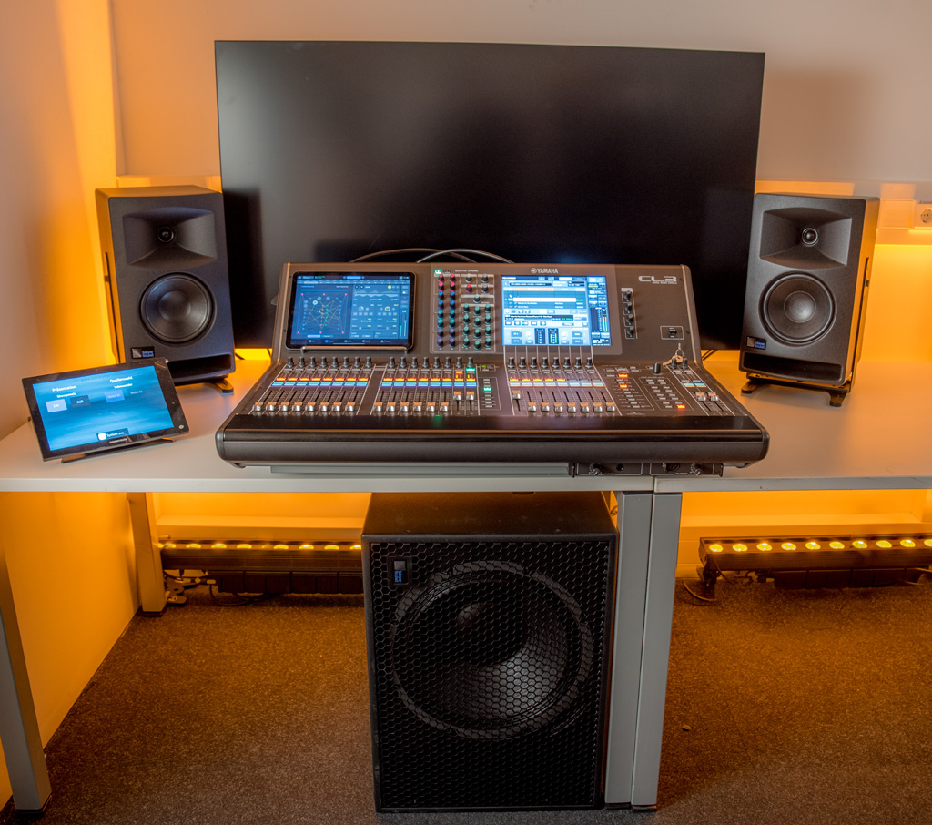 Auch für die Abmischung von Ton und Video sorgt ein System von Meyer Sound. In einem kleinen Studioraum, welcher ans Plenum angrenzt, wurde ein Amie 2.1 System installiert.