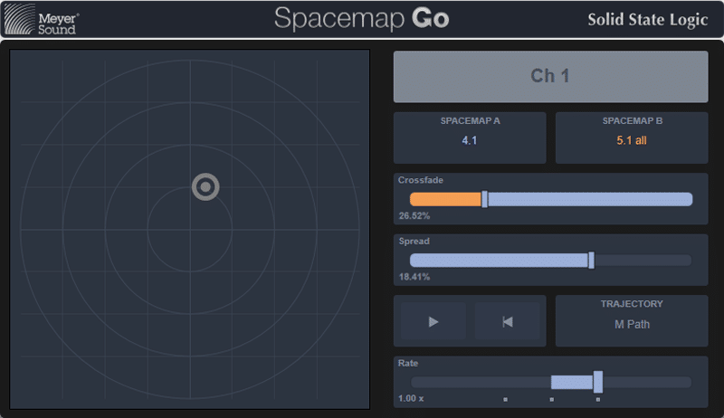 Spacemap Go nutzt die Prozessorleistung der Meyer Sound Galaxy Netzwerkplattform in einer intuitiven iPad App. Snapshots können mit der App erstellt werden und sind nun im Mischpult oder der DAW integriert, um Sounds statisch zu positionieren oder dynamisch zu bewegen. Die Positionierung der Klangquellen kann vollständig automatisiert oder in Verbindung mit Live-Eingaben entweder über die Bedienoberfläche der Konsole, über ein oder mehrere iPads oder synchron über beides gleichzeitig erfolgen.