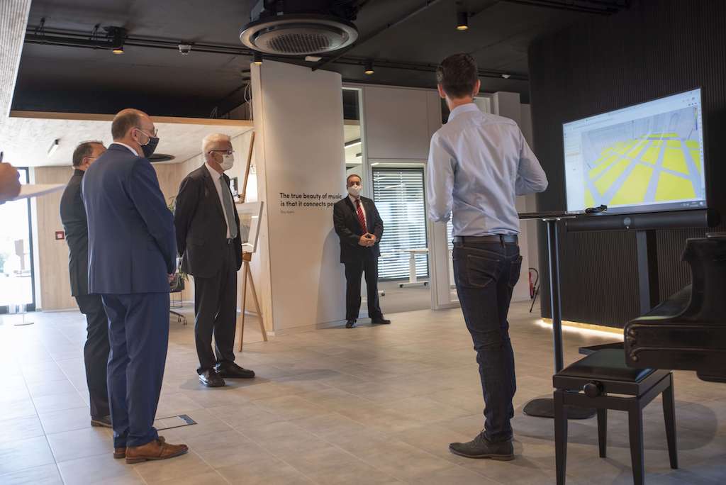 Noch vor der Betriebsführung stellte Samuel Hartmann im Foyer des gerade neu bezogenen Firmensitzes die neue Software Fohhn Designer vor, die es ermöglicht, Fohhn-Systeme in allen Raummodellen präzise zu simulieren und zu planen. Herr Kretschmann sah und hörte sich dazu ein Beispiel aus der koptischen Kathedrale in Kairo an.