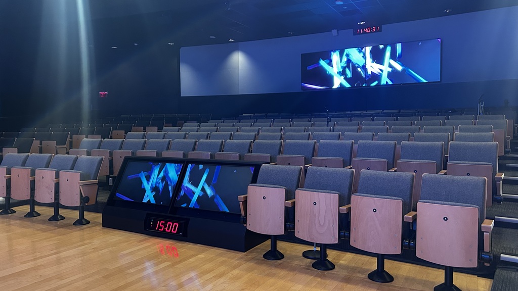 Ursprünglich mit einer einfachen Erneuerung der Ausrüstung beauftragt, erkannte Audio Visual Dallas schnell die Notwendigkeit, das Erlebnis für Benutzer und Publikum vollständig zu verändern. „Vor der Modernisierung war die Ausstattung des Auditoriums nicht gerade ideal“, erklärt Nix. „Die Hauptbildschirme waren ein zehn Jahre alter Rückprojektionsbildschirm, der von zwei 85-Zoll-LCD-Displays unterstützt wurde. Die Vortragenden nutzten kleine Bodenmonitore für ihre Notizen, während zwei Projektoren an der Rückwand als Kontrollmonitore dienten. Das gesamte System lief über einen standardmäßigen HDMI-Matrix-Umschalter.“