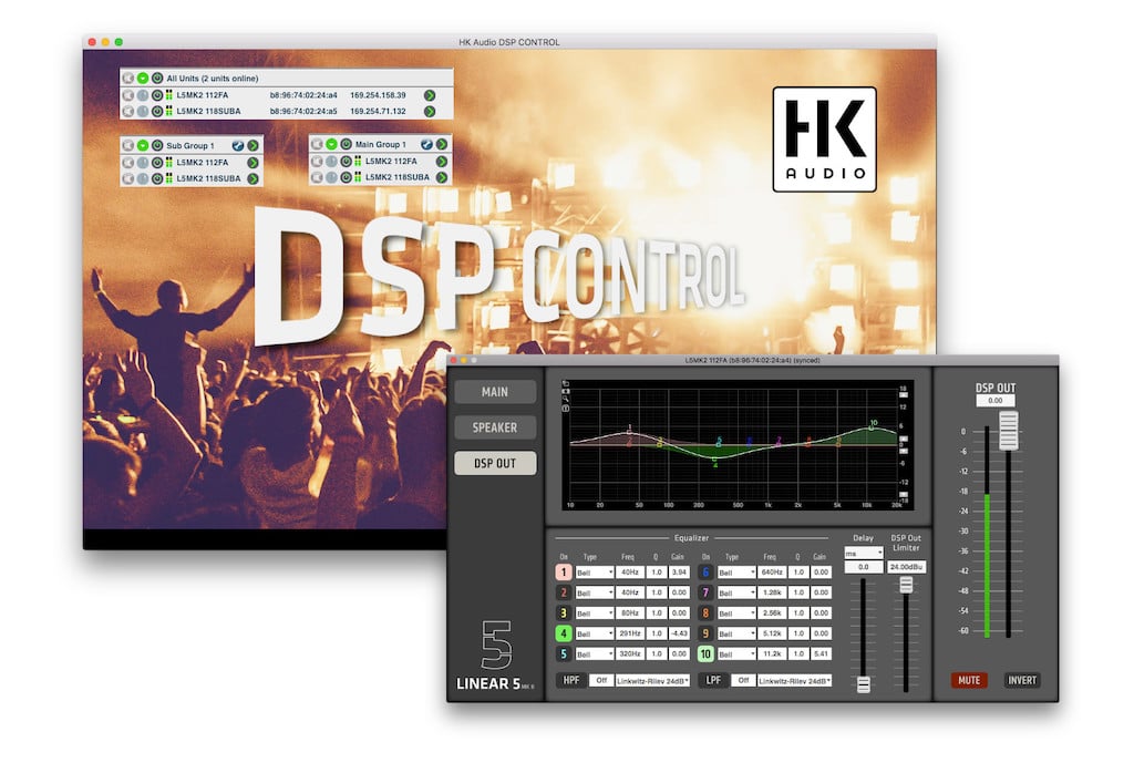 HK Audio DSP Control ist eine Software für Mac und PC zur Sound-Abstimmung, für Firmware-Updates und zur Fernsteuerung der DSP-Parameter aller netzwerkfähigen HK Audio Lautsprecher der Elements D, Linear 5 MK II, Linear 7 und Linear 9 Serien.