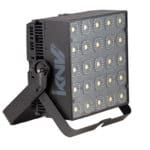 Das GLP KNV System besitzt jeweils 25 Power-Pixel, jedes bestehend aus einer Hyper-Bright Power White LED für maximale Helligkeit und Wirkung und einem umgebenden Ring aus 16 RGB-Multicolor-LED für kreative Effekte und Hintergrundbeleuchtung. Alles zusammen bringt es ein Modul auf 50.000 lm. Seine Vielseitigkeit gewinnt das KNV durch sein Gehäuse mit Schutzart IP 54. Damit lässt sich das System auch an Front-Traversen auf Festivals oder für andere Outdoor-Anwendungen einsetzen. Dank Power/Data Daisy-Chain lassen sich auch mehrere Geräte einfach verkabeln. Für eine einfache Ansteuerung sorgen zwei FX-Engines, mit der sich laut GLP schnell herausragende Effekte generieren lassen.