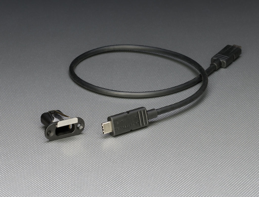 Die platzsparende Einbauversion mit push/pull-Verriegelung kann von vorne oder hinten montiert werden. Das umspritzte Gehäuse des Kabelsteckers verschwindet beim Einstecken etwa zu 75 Prozent in der Einbaubuchse und rastet ein. Dies gewährleistet nicht nur eine zuverlässige Verbindung, sondern schützt zusätzlich vor Verschmutzung und mechanischen Belastungen. Die mediaCON-Kabel mit Knickschutz sind in den Längen 0,5 und 1 Meter erhältlich. Alle mediaCON Komponenten sind auch mit handelsüblichen USB-C-Produkten kompatibel.