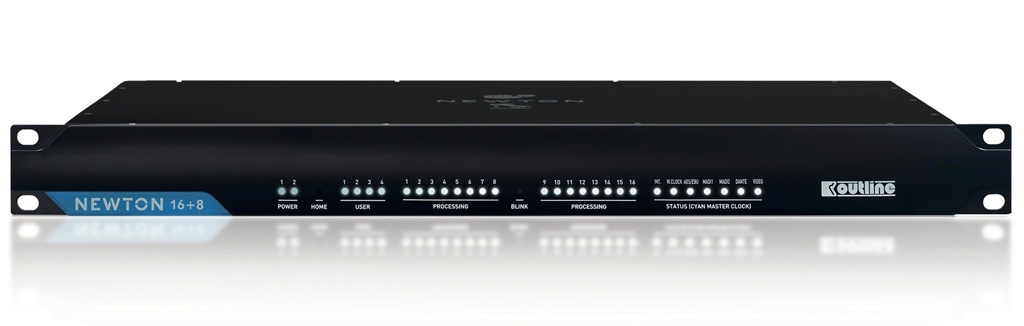 Newton ist ein Prozessor von Outline, der laut eigener Aussage eine kompakte, robuste und äußerst benutzerfreundliche Lösung für die Verteilung von Multiformat-Signalen in PA-Systemen, die nahtlose Verwaltung mehrerer Konsolen und die Synchronisierung digitaler Signale über verschiedene Zeitstempel hinweg bietet.