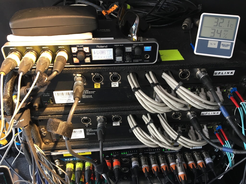 Michael fährt fort: “NEWTON hat alle unsere Erwartungen spielend erfüllt und sogar übertroffen. Die Eingabe- und Ausgabekonfiguration sowie die Möglichkeit, mehrere Formate gleichzeitig verarbeiten zu können, erleichterten uns das Leben enorm. Der Outline NEWTON ermöglichte uns, AES als unser Hauptdatenprotokoll mit paralleler analoger Sicherung zu betreiben, die dann nur per Knopfdruck zur Notumschaltung bereitstand. Auch die tägliche Arbeit mit drei oder vier verschiedenen Konsolen wurde für uns sehr angenehm, auch als Lenny Kravitz uns sieben diskrete Analog-Feeds von seinen eigenen Lake-Controllern gab. Alles kein Problem.“