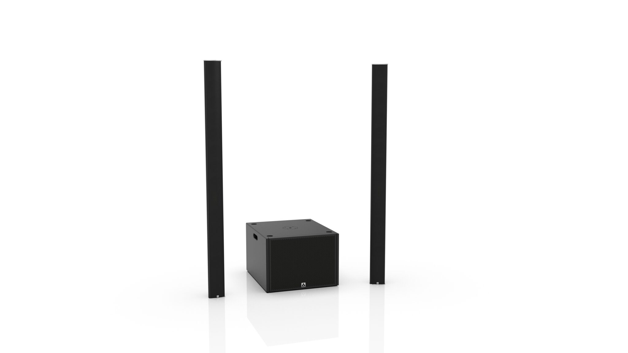 Der Linienstrahler P 12-AMT sorgt für klaren Klang, der passive Subwoofer P SW-112 rundet das Soundsystem im Tieftonbereich ab. (Bild: Pan Acoustics)
