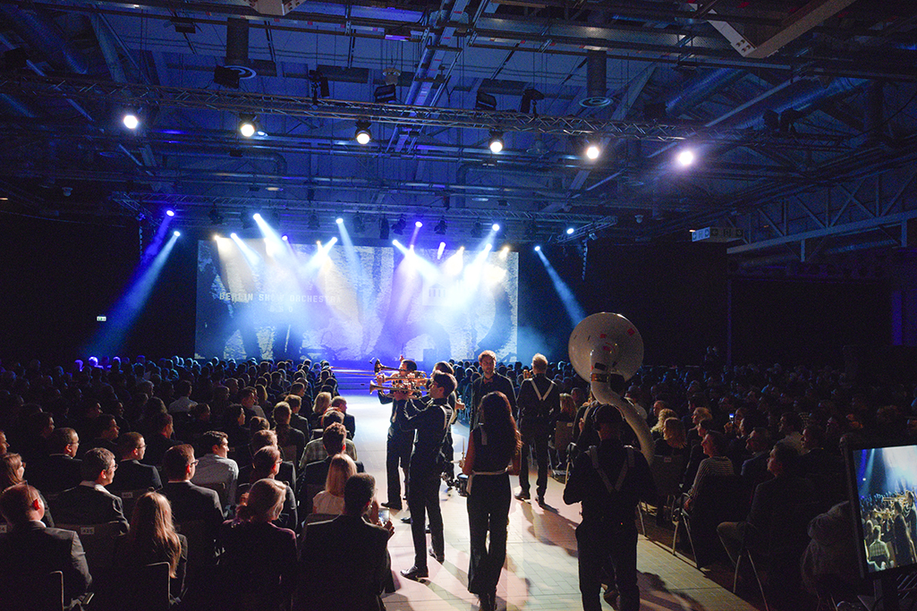 Das Motto Urban Street Art war neu auf die Veranstaltungen genau abgestimmt und holte die jungen Preisträger in ihrer Lebenswelt ab – und das mit vollem Erfolg. Schon vor dem Eingang empfing ein Graffitikünstler die Gäste mit einem gesprayten IHK-Logo während Öl-Tonnen und andere Dekoration im Innern das Thema aufgriffen. Durch die Shows führte Das-Ding-Moderator Constantin „Consi“ Zöller, musikalisch begleitete das Berlin Show Orchestra als Techno-Brass-Band mit Walking-Live-Music und Live-Jingles. Und als Showact begeisterte BMX-Frank mit Stunts auf der Bühne und zwischen den Reihen.