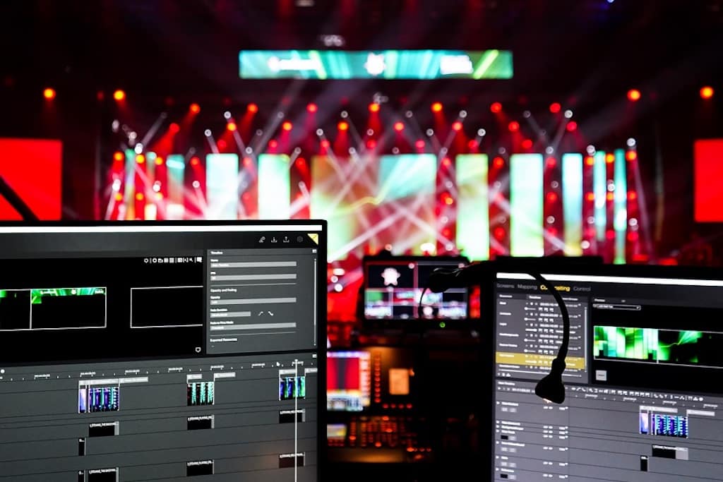Hardwareseitig kamen zwei Pixera Two Quad Medienserver mit Liveinputkarten, eine Lightware HDMI-Kreuzschiene für die Umschaltung von Main- zu Backupquellen und ein Focusrite Audiointerface für die Audioausspielung zum Einsatz.