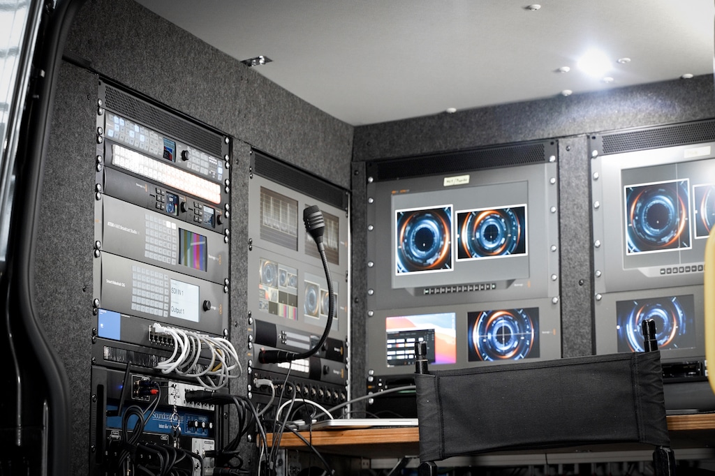 Alle Signale könnten auf zusätzliche Monitore durchgeschleift werden, um den Arbeitsbereich zu verdoppeln oder nach draußen zu verlagern, so dass der Transporter nur als vorkonfigurierte Technikzentrale genutzt wird. Es sollen bis zu acht Kameras über SMPTE-Glasfaser mit Talkback und Tally betrieben werden können. Der Beifahrersitz könne als Kontrollraum oder Kommentatorenkabine genutzt werden, um das Livesignal mitzuverfolgen.