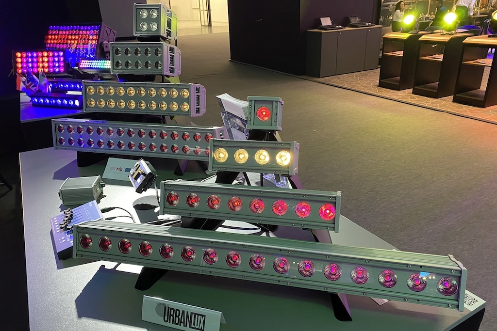 Die Urban Lux sei eine Serie von Fassaden- und Outdoorleuchten mit RGBW-, Tunable-White- und reinen Weißlichtversionen in 8 verschiedenen Baugrößen von 10W bis 300W (960 bis 31.100 Lumen). Alle Typen seien in Schutzklasse IP67 ausgeführt, passiv gekühlt und mit Lumiled Luxeon LEDs bestückt. Als Besonderheit werde das DMX-Signal zur Ansteuerung auf die Netzleitung aufmoduliert. Es sei also nur eine Zuleitung nötig.