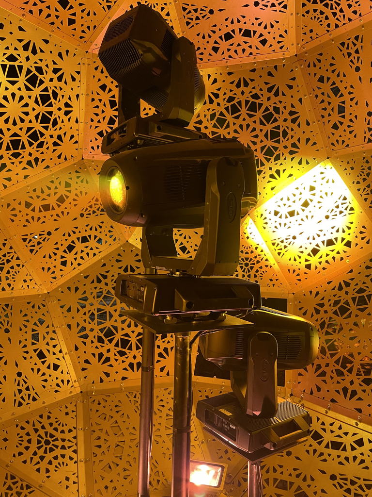 Die Proteus Lucius Leuchten bereicherten auch einen Bereich mit Kunst der Bildhauerkünstler HYBYCOZO, die seit 2017 an der Veranstaltung beteiligt sind. In diesem Jahr wurde ihre Installation aufgefrischt, indem sie in einen besser zugänglichen, offenen Bereich verlegt und in Bewegung versetzt wurde. Medvitz erklärt: “Wir haben größere Skulpturen als in der Vergangenheit verwendet, Stücke, um die die Gäste herumgehen und die sie sogar betreten können. Wir wollten, dass das Erlebnis rund um die Skulpturen weniger atmosphärisch und mehr einnehmend ist. Wir arbeiteten mit den Künstlern zusammen, um einen Soundtrack für die Installation zu erstellen, und setzten Proteus Lucius in sechs der Skulpturen ein. Die Skulpturen leuchteten nicht nur, sondern es gab auch eine Reihe von bewegten Effekten, die durch die Skulpturen hindurchgingen. Das hat Spaß gemacht, vor allem den Kindern, die mit den Effekten interagierten und sie umherjagten.”