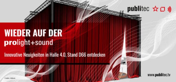 publitec Präsentationssysteme & Eventservice ist vom 10. bis 13. April 2018 nach mehrjähriger Pause wieder auf der Frankfurter Messe Prolight + Sound vertreten. Das Unternehmen aus Herdecke präsentiert in Halle 4.0 auf Stand D66 Produktneuheiten und plant während der viertägigen Messe interessante Specials, auf die Besucher gespannt sein können.