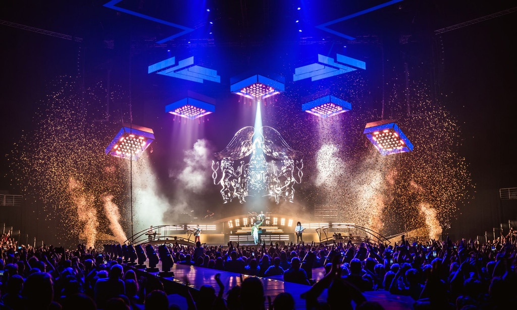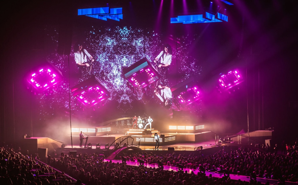 „Die Show dreht sich um das Konzept der Tiefe“, sagt Hruška, der die Bühne, das Beleuchtungsrigg und die Videografik für die Show entworfen und auch die Handlung geschrieben hat. „Ich wollte, dass die Automatisierungsplattform die Perspektive wechselt, ich ließ einen langen Catwalk ins Publikum herein ragen. Die Idee war, Barrieren abzubauen und die Menschen mit der Band und der Musik von Freddy Mercury zu verbinden.“
