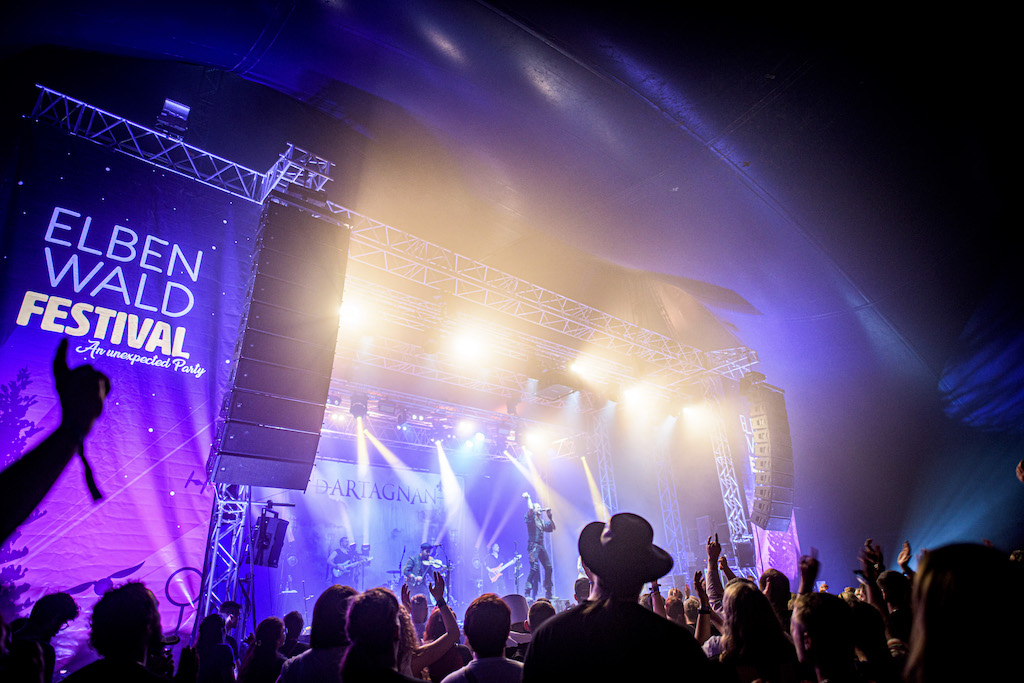 Das Elbenwald Festival setzt auf einen Mix aus Musik, Lesungen, Filmvorführungen, Star-Meetings, Spiele und Workshops. Einer der Haupt-Locations während des 4-tägigen Festivals war das große Zelt, in dem Lesungen, Konzerte, Meet & Greets und Workshops stattfanden. Mit mehr als 2.500 m2 fasste das Zelt rund 4.000 Fans. Das musikalische Programm und damit auch die Anforderungen an die Audio-Anlage konnten dabei nicht unterschiedlicher sein. Von gitarrenlastigen Performern wie Malik Harris, den Mittelalter Rockern Schandmaul bis hin zu einem großen Filmorchester reichte die Bandbreite der musikalischen Darbietungen.