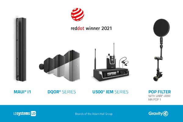 Auch 2021 kann sich die Adam Hall Group über mehrere Red Dot Awards in der Kategorie Product Design freuen. Ausgezeichnet wurden drei Produkte der Marke LD Systems sowie eines aus der Gravity-Reihe.
