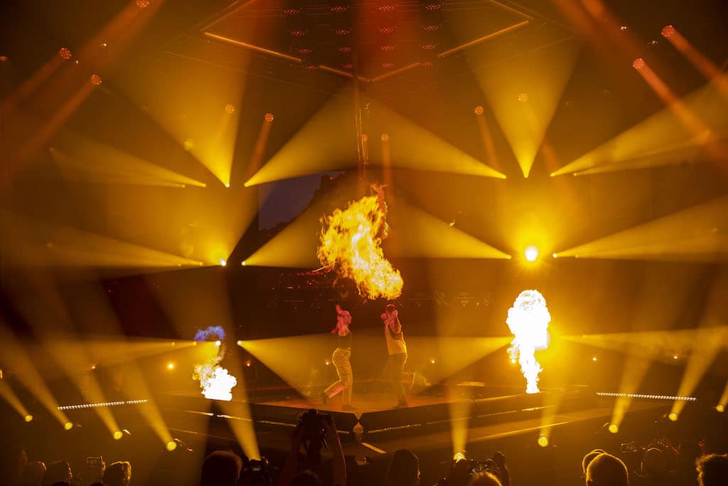 Da es sich um die Abschlussshow der Trilogie handelte, sollte der epische Charakter der „All Environments“-Show nochmal auf ein neues Level gehoben werden, erklärte der Kreativleiter von Robe, Nathan Wan – der das Projekt mit seinem eigenen Team, bestehend aus dem zweiten Lichtdesigner Andy Webb und dem Lichtoperator Jordan Tinniswood sowie dem Eventmanager Tomas Kohout, realisierte. Die Choreografie für die drei Darsteller stammt von Jay Marshall.