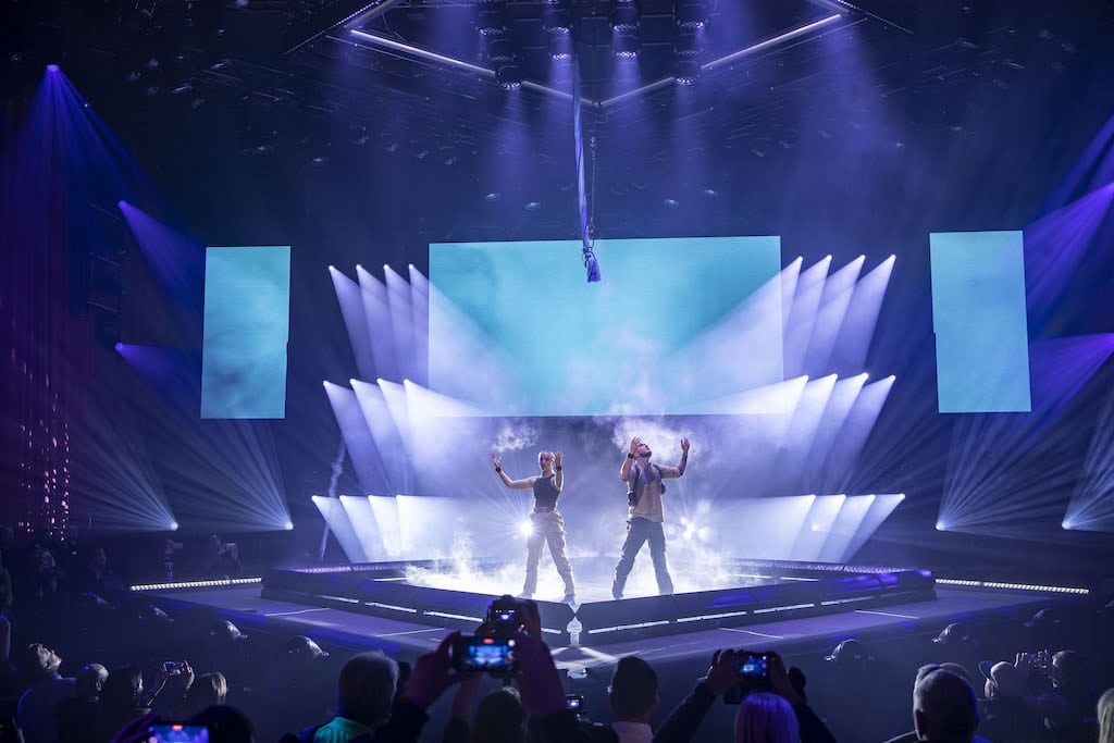 Das fast 360° Bühnendesign wurde gewählt, um den Zuschauern einen maximalen Betrachtungswinkel zu ermöglichen. Ein 9 Meter breiter und 3,6 Meter hoher LED-Bildschirm im hinteren Bereich in drei Abschnitten habe dabei geholfen, den erzählerischen Kontext der Show und klare und präzise technische Produktinformationen während der VOG-Präsentationen zu liefern.