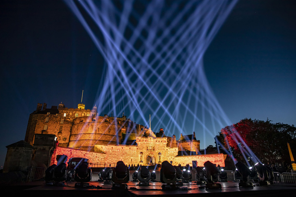 Vierzehn separate Lichtinstallationen in der ganzen Stadt hoben einige der berühmtesten Veranstaltungsorte der Edinburgher Festivals im August hervor. Das Festival musste aufgrund der Corona-Pandemie abgesagt werden.