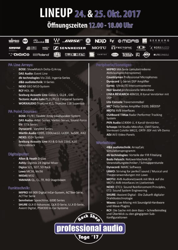Bereits schon traditionell steigen am 24./25. Oktober 2017 die Rock Shop Professional Audio Tage im firmeneigenen Crystal Ballroom (Am Sandfeld 25 – 76149 Karlsruhe).