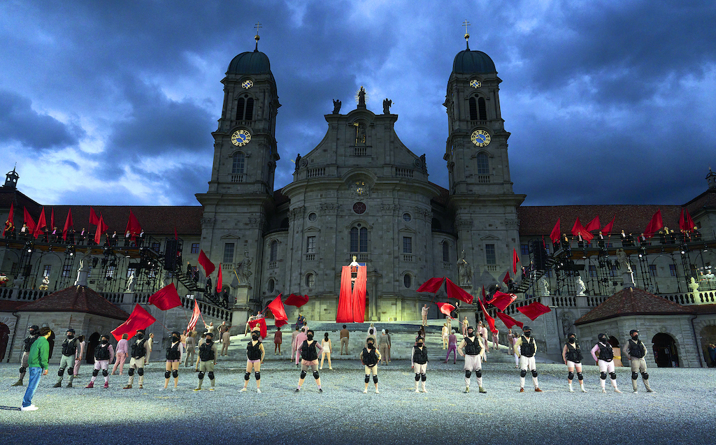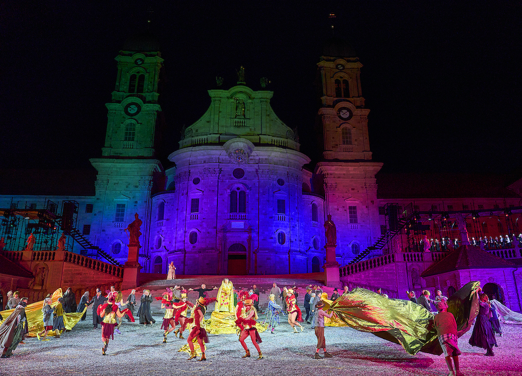 Zur Spielzeit zum 100-jährigen Jubiläum kamen 60.000 Zuschauer, die bei 38 Aufführungen vom 11. Juni bis zum 7. September 2024 das Spiel der über 500 engagierten Frauen, Männer und Kinder aus dem Ort Einsiedeln vor der historischen Kulisse der Klosterkirche frenetisch feierten. Die monumentale Gemeinschaftsleistung spiegelt den Geist und die Kultur des Klosterdorfs wider, in dem monatelange Vorbereitung und Hingabe zu einer einzigartigen Teamarbeit verschmelzen.