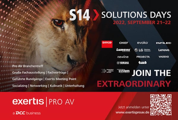 Vom 21. – 22. September 2022 trifft sich die Pro AV/IT-Branche zu den S14 Solutions Days in der Exertis Pro AV Zentrale in Uhingen bei Stuttgart.