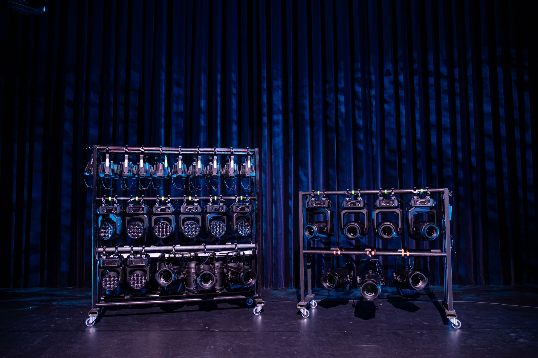 Da in beiden Sälen keine feste Lichtinstallation vorhanden sei, werde die Beleuchtung für jede Show individuell angepasst. Dies ermögliche kreative Freiheit und sorge gleichzeitig für Effizienz, da keine überflüssigen oder ungenutzten Scheinwerfer an der Decke hingen. Allerdings bedeute dies auch, dass jedes Gerät vielseitig einsetzbar und hochgradig mobil sein müsse, obwohl es sich um eine „feste“ Installation handle.