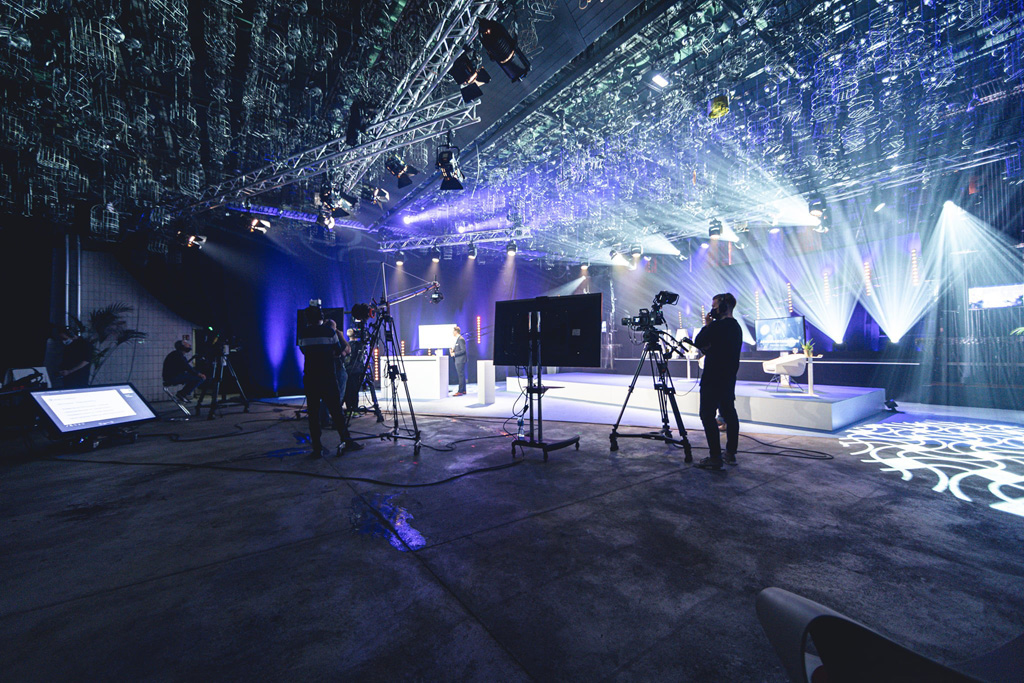 „Besonderes Augenmerk wurde auf die Illumination der Location, sowie auf die professionelle Ausleuchtung der Redner und Gesprächsrunden am Studio-Set gelegt“, fährt Jansen fort. „Die Beleuchtung musste einwandfrei sein, damit der Livestream seine Wirkung zeigt und dabei auch der architektonische Charakter des Raums für das Kamerabild erhalten bleibt.“
