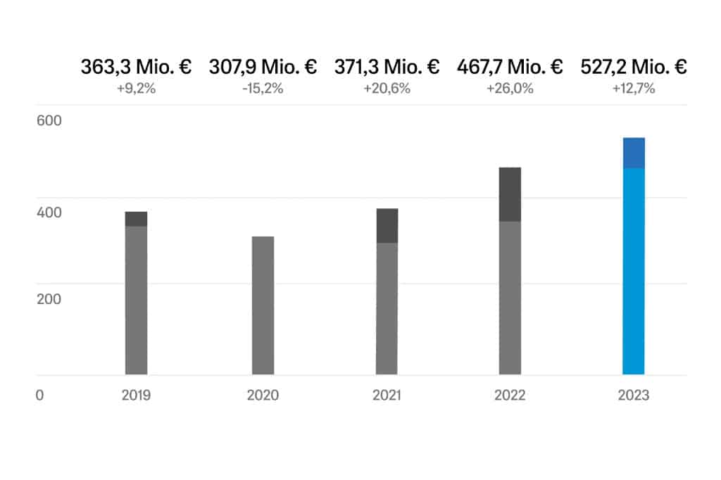 Die Sennheiser-Gruppe hat mit ihren Audiolösungen im Geschäftsjahr 2023 einen Umsatz von 527,2 Mio. Euro erzielt. Damit übertraf der erreichte Umsatz erneut das Ergebnis des Vorjahres mit einem Wachstum von 12,7%. Zudem hat das unabhängige Familienunternehmen 2023 genutzt, um nachhaltig in die Zukunft zu investieren.