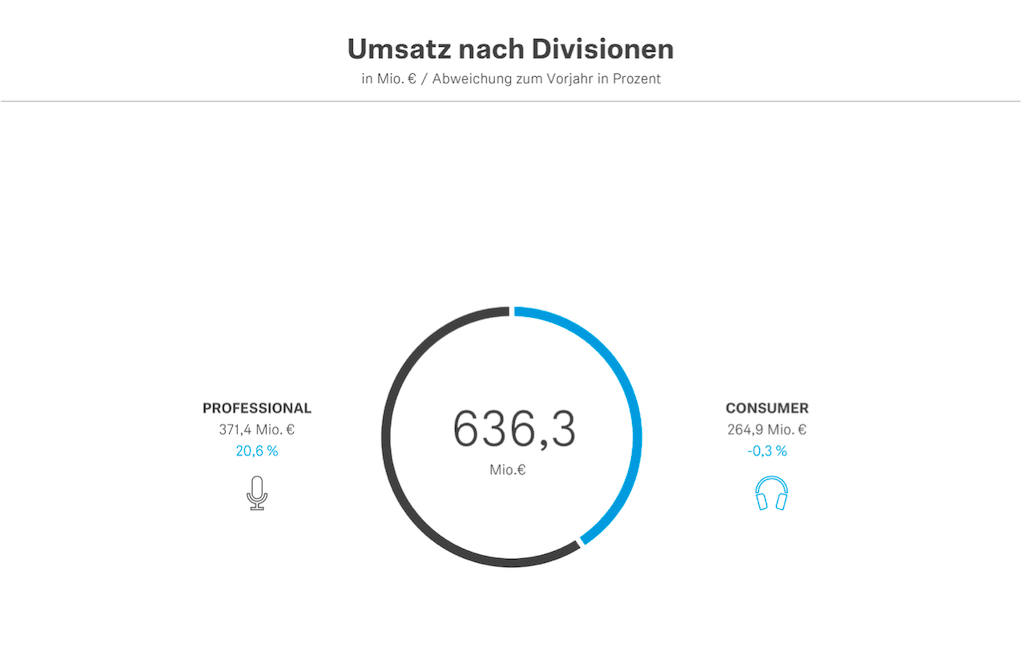 Aufgeteilt nach Geschäftsbereichen lag der Umsatz der Professional Division bei 371,4 Millionen Euro, die Consumer Division erzielte einen operativen Umsatz von 264,9 Millionen Euro. (Bild: Sennheiser)