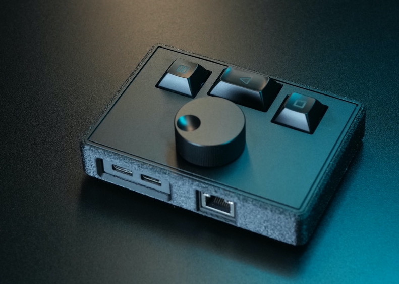 Die Idee sei zwischen Proben, Umbauten und Shows auf Tournee entstand . Zwischen Midi-Bastellösungen und Stream‑Deck‑Tasten, die sich zu weich anfühlen, und dem Bedürfnis nach einem Werkzeug, das nicht „irgendwie funktioniere“, sondern immer. FrenschConnection habe daraus ein Gerät gebaut, das sich bewusst von unnötig softwareabhängigen Lösungen absetzt: Mechanische Tasten mit definierter Haptik, ein großer Encoder für präzise Parameterfahrten, zwei USB‑C‑Ports für Redundanz, ein Netzwerkanschluss und ein robustes Gehäuse.
