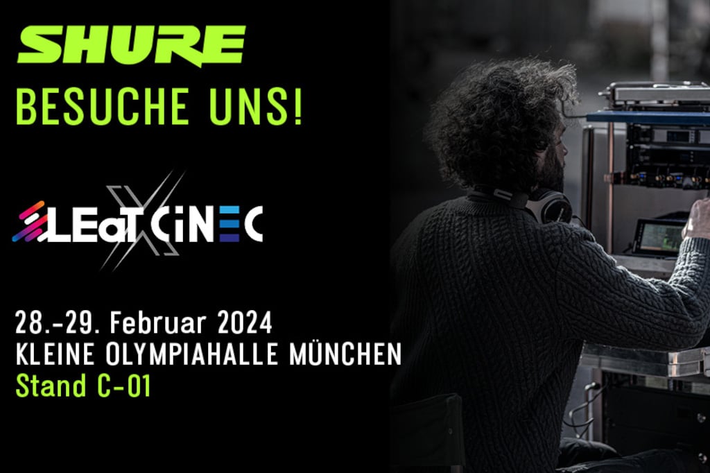 Besucher:innen der LEaT X CiNEC haben die Möglichkeit, die Shure-Produkte am Stand C-01 zu erleben. Zusätzlich können sie an den Vorträgen von Markus Eichhofer und Regina Holzmann, beide im Market Development bei Shure tätig, teilnehmen, um ihr Wissen in den Bereichen digitale Drahtlostechnik und Frequenzmanagement zu erweitern.