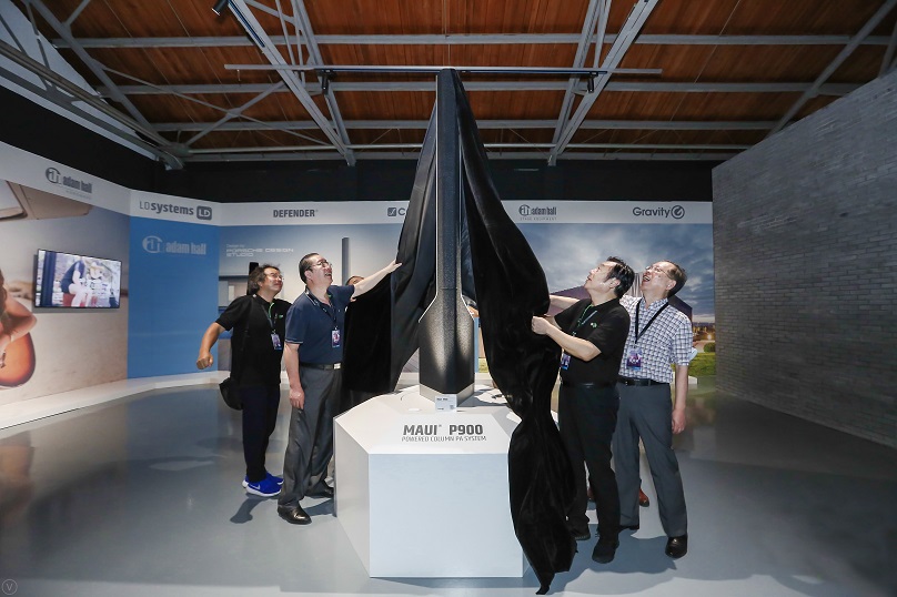 In der Ausstellungshalle enthüllten Experten das Produkt-Highlight aus dem Audiobereich der Adam Hall Group, die MAUI P900.
