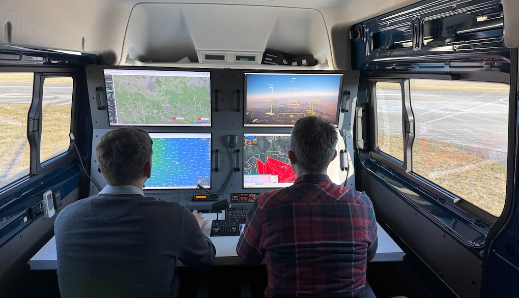 Aus einem Kontrollzentrum im Bodenfahrzeug wurde die Drohne gesteuert (Bild: Deutsche Telekom)